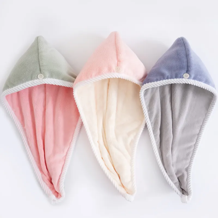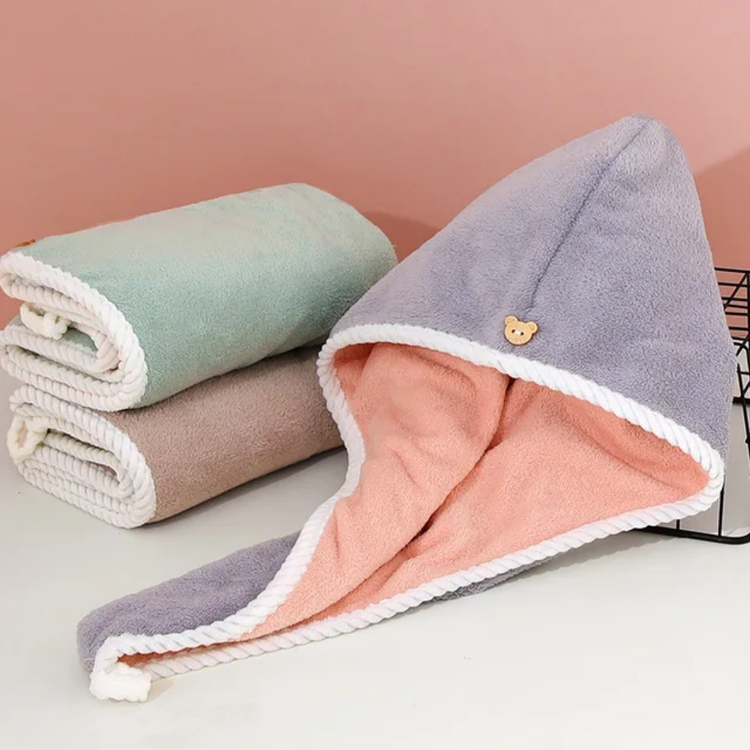 حوله کلاهی حمام زنانه هندی ضخیم ۲ لایه بسته ۱۲ عددی سر خشک کن دکمه دار میکروفایبر عمده لوکیا