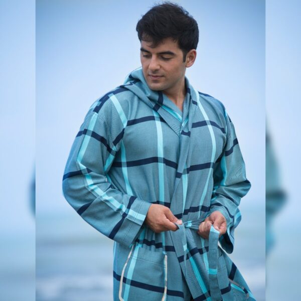 حوله تن پوش ابراهیمی طرح زمینه تیره سایز لارج L بسته 6 عددی حوله یزدی پالتویی نخی جنس 100 درصد نخ حوله تنپوش عمده لوکیا کپی